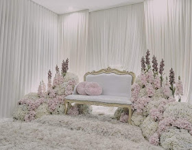 pelamin penuh bunga dengan sentuhan putih dan kaler lavender..so sweet